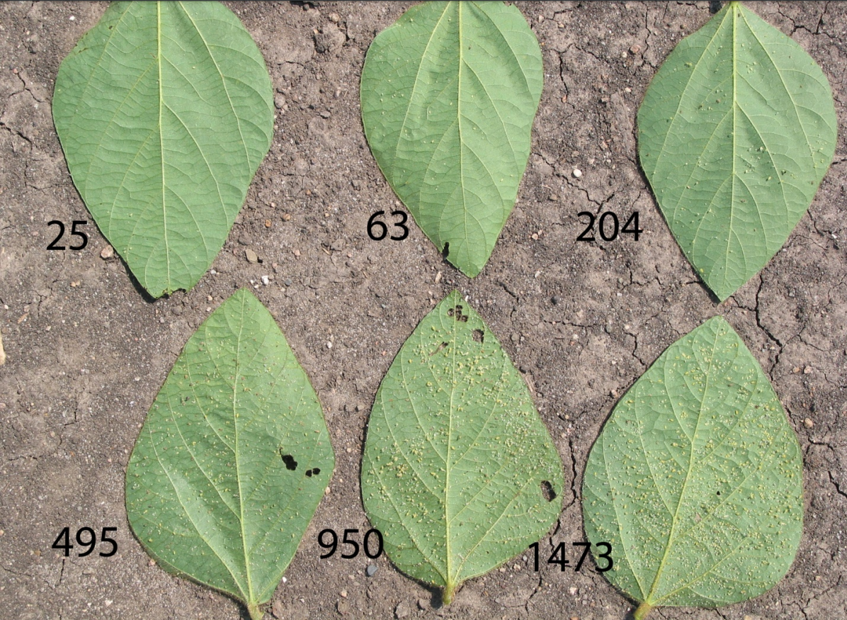 - Count or estimate the number of soybean aphids per plant on at least 30 plants in the field (6 plants in 5 areas).