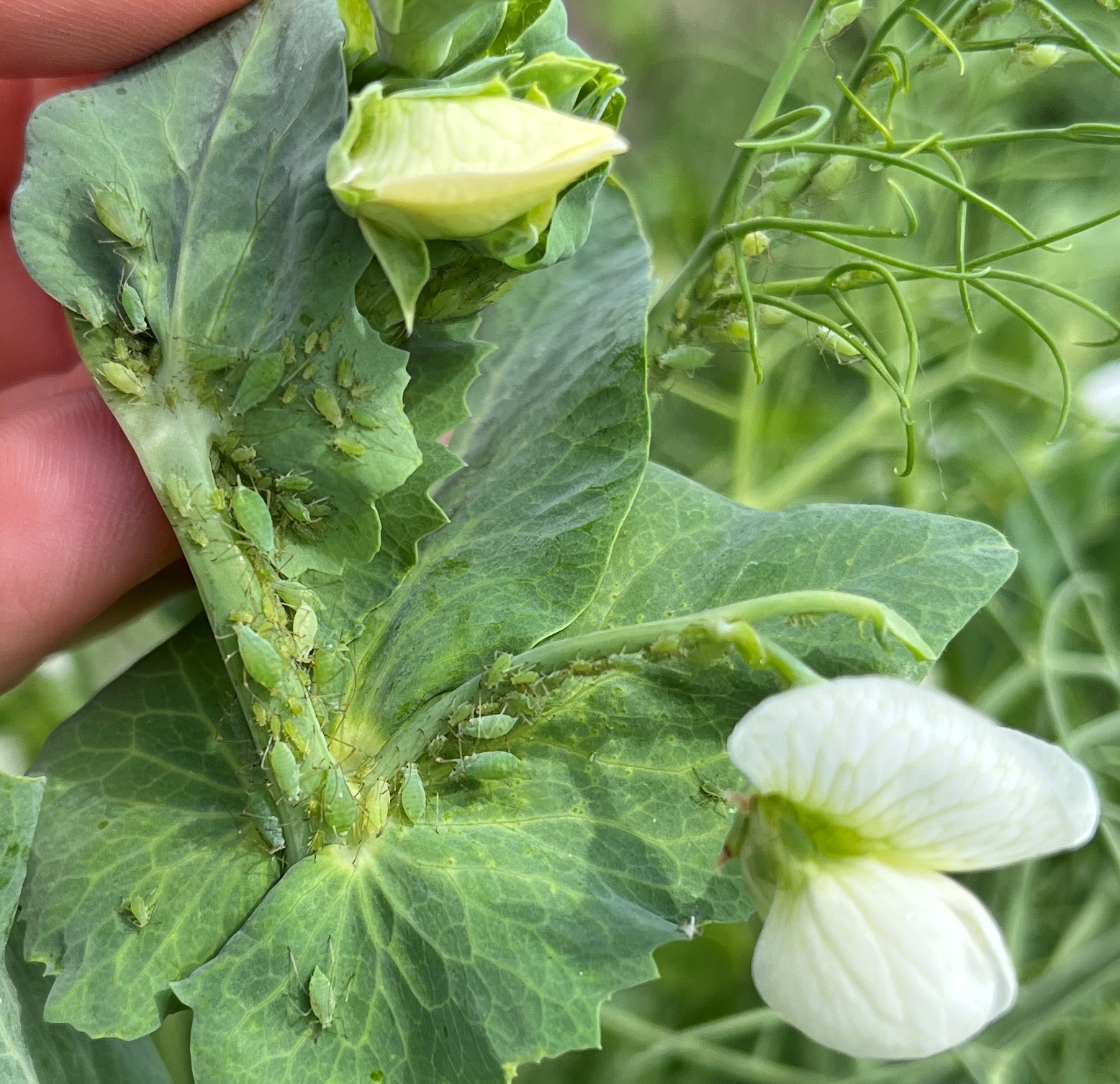 Field pea aphids at high populations levels near Portage la Prairie on July 27, 2022