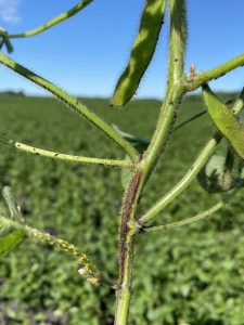 Northern stem canker was the most common stem disease in 2022 infecting 15% of soybean fields surveyed. White mould was not found during the survey but was more common to find in soybean fields in 2022 than in previous years.