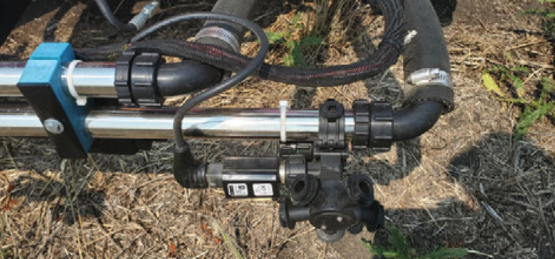 Boom ends are another problem area. Clearing them of residue involves opening both ends on each section and allowing the material to spill on the ground – a messy operation. When the next spray mix is added, boom ends should be cleared of air or water to prime the boom. A recirculating boom takes care of both issues (Figure 3). To create such a system, the individual sections are strung together to form a continuous line on each wing. Spray mix is fed to the end of each boom wing and centre section, and it runs along the entire boom back to the tank where there is a shutoff valve. When this valve is open, the spray tank contents simply recirculate through the boom and back to the tank. When the valve is closed, normal spraying occurs. Sectional control is achieved through individual nozzle shutoffs, either solenoids via PWM, or air- activated for less cost.