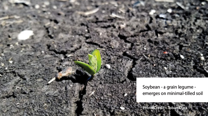 An example of the soil carbon gains from the removal of fallow and replacement by pulses is a ten-year study from Agriculture and Agri-food Canada colleagues at Swift Current. From 1995 to 2005 removal of fallow in a three-year rotation with pulses (field pea, lentil and chickpea) increased soil organic carbon by 200 kg/ha in the top 6” of soil. That’s a considerable increase for a dry climate. In Manitoba, an increase in soil organic carbon is most prominent in West Man, where no-till and field pea are more common.