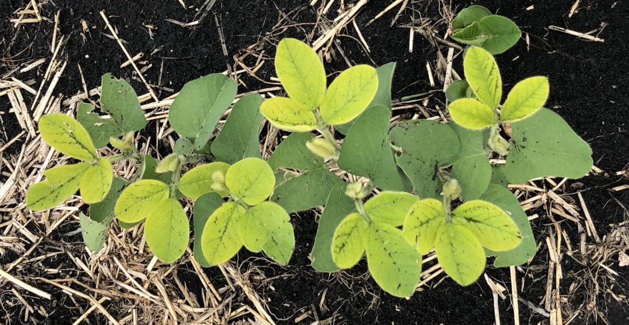 Up to V1, soybean cotyledons supply stored iron to the plant. Once that source is depleted, plants need to acidify their root zone to access iron in a plant-available form. Excess moisture, calcium carbonates, soluble salts and nitrates can all impact this.