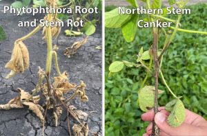 - One look-alike to PRR is Northern Stem Canker where plants will appear wilted and there will be a brown lesion along the stem. But with stem canker, roots will appear healthy and the lesion won’t extend upwards from the soil line. Stem canker often also infects following stem damage from hail or storms.