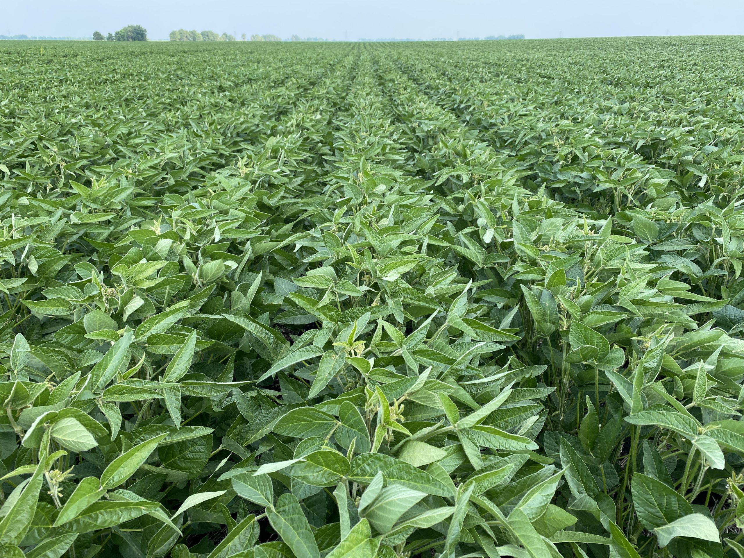 - Soybeans range from R2 (full flower) to R5 (beginning seed).