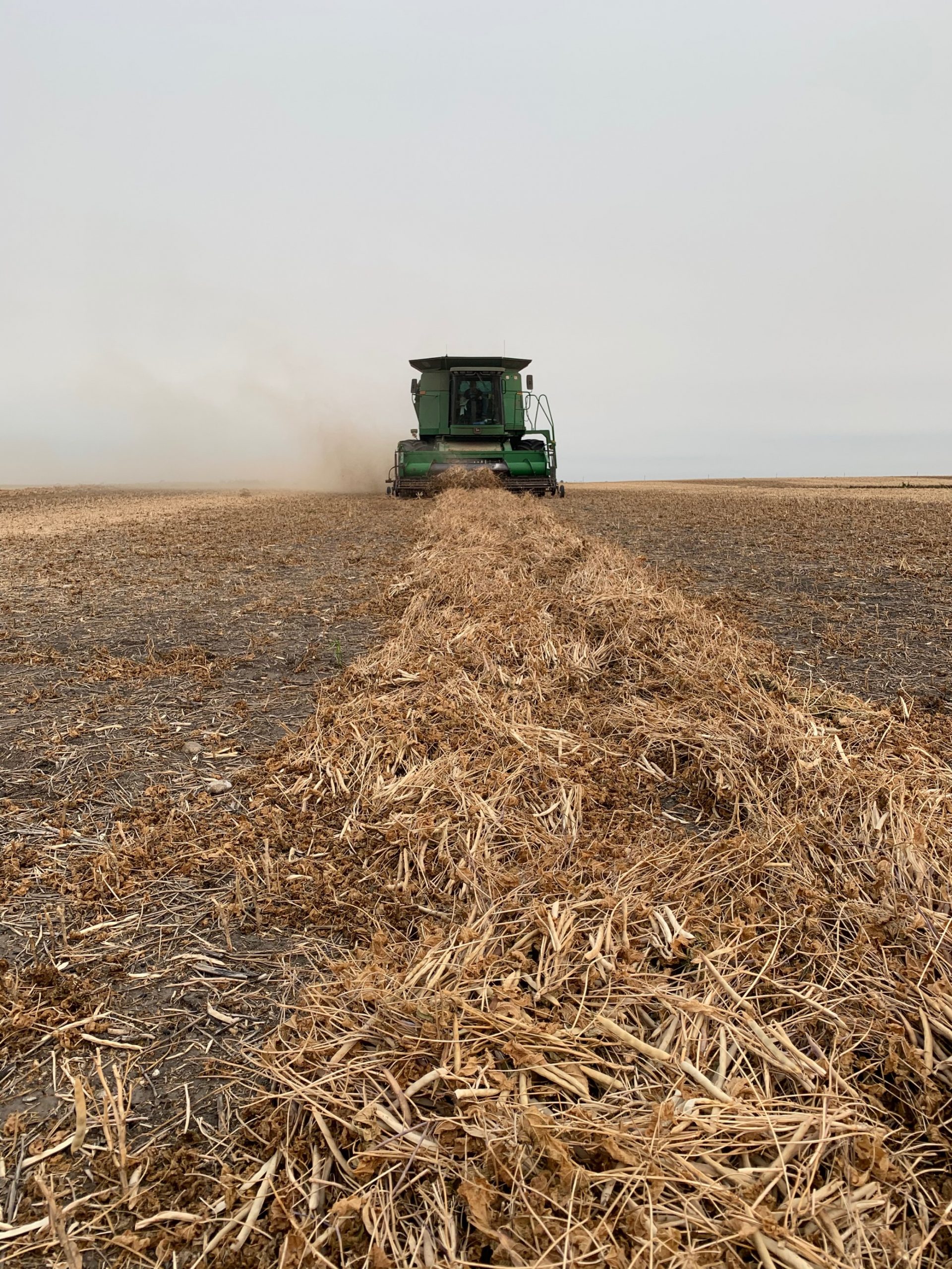 - More material entering the combine through larger windrows or a wider cutting width will also help cushion beans.