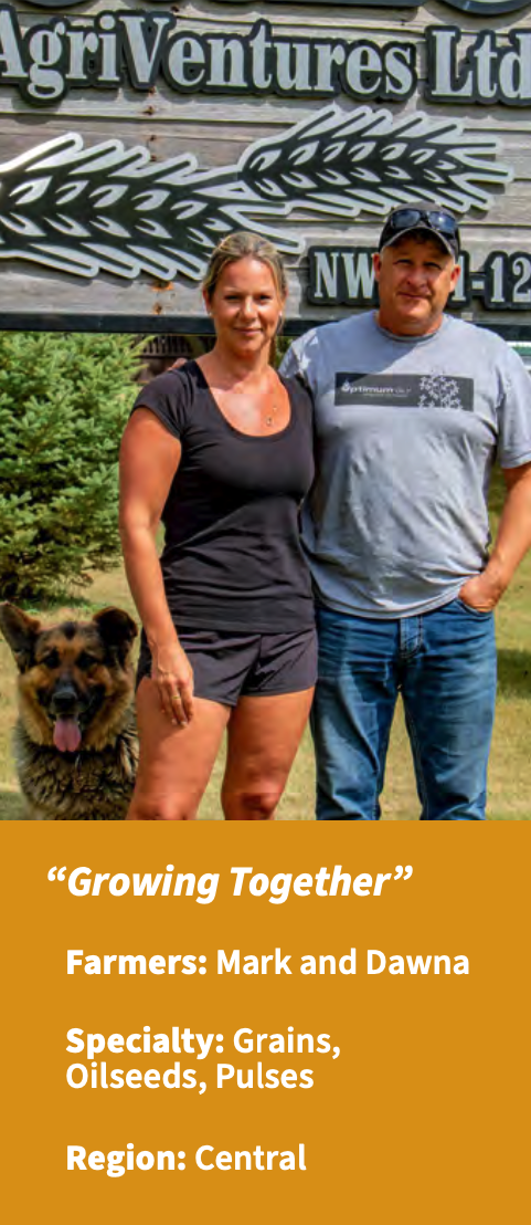 Mark and Dawna enjoy sharing their agronomy knowledge with others through their seed and input business. They believe in the value of science-based research, and they share the results of their field scale research with their customers. This ensures they match the right crop with the right acre so that what’s planted can be harvested with as much success as possible. They are a part of a community of passionate growers who aim to make responsible choices when it comes to producing crops, and they are proud to feed those locally produced crops to their own family.