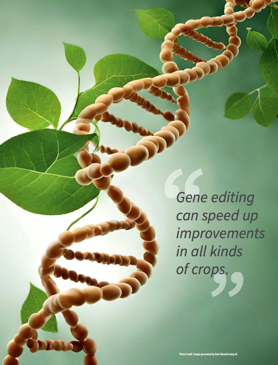 Until this guidance came out, breeders involved in gene editing were subject to the same rigorous protocols and regulatory roadblocks as those involved in creating genetically modified organisms (GMOs), resulting in exponential cost increases and lengthy market-readiness timelines. Gene- edited crops are still subject to regulatory oversight, but it’s more aligned with other non-GMO processes.