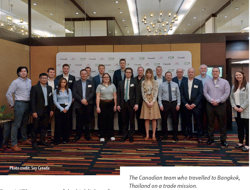 “We went to a factory where they bought a fair amount of Canadian conventional soybeans. They made soy milk and soy chocolate milk, and even a form of yogurt from it, which tasted quite good,” explains Rattai. “That was one of the highlights of this part of the trip. We had a pretty good crowd, probably about 50 people, that we presented to in Bangkok. These were people who were buying our soybeans.”