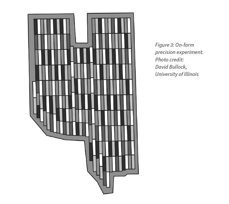 Precision technology using variable rate equipment is going to be incorporated into OFN as a trial option this season. An example is varying nitrogen rates across a field to discover which nitrogen rate is most profitable (Figure 3). This technology is leveraged to design unique and robust trials.