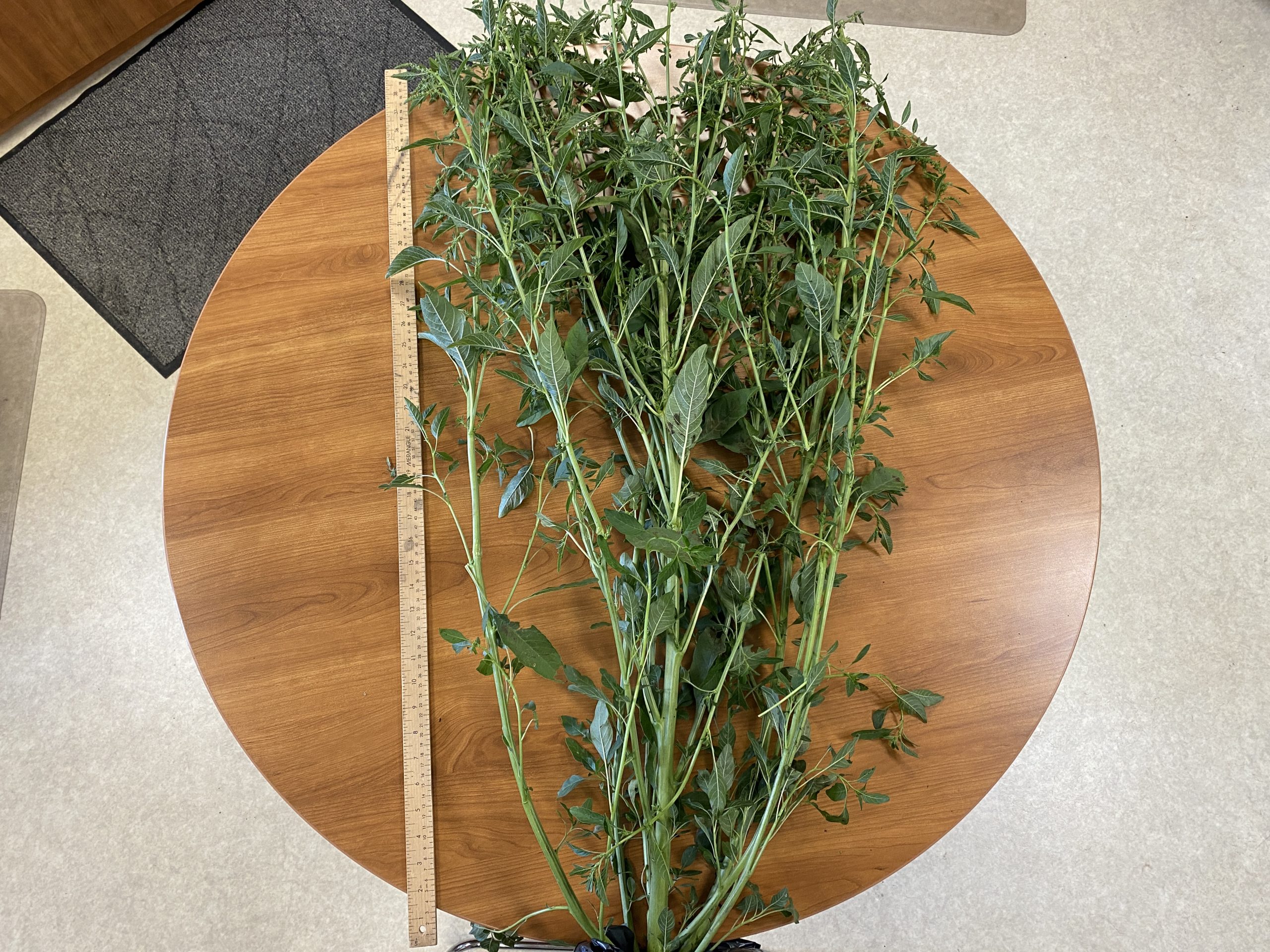 - Potato leafhoppers have been observed causing some damage on a few plants in the headlands on some fields. Small, triangular brown areas at the tips of leaves is a sign of ‘hopper burn’. Economic thresholds are 2 leafhoppers/trifoliate at R1 and numbers observed in the field have been well below this threshold.
