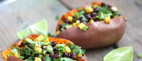 Sweet Potatoes Stuffed with Chipotle Black Bean and Corn Salad