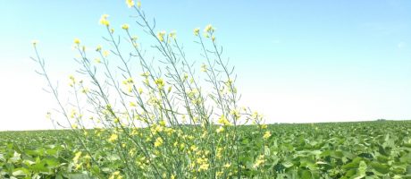 Towering yellow-flowered plants in a soybean field don’t just look a bit out of place, these volunteer canola plants are…