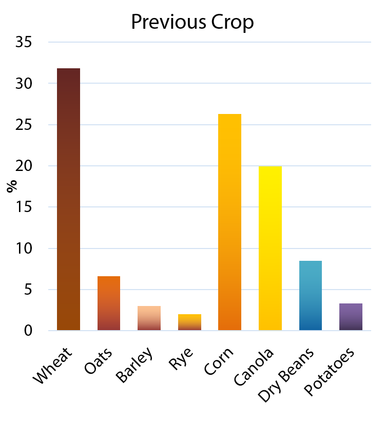 ry beans grown on canola, dry bean, soybean and potato stubbles.