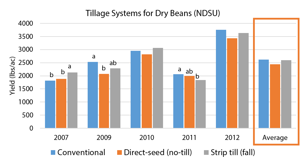 The majority of dry bean acres are tilled conventionally, but minimum/reduced till, strip till and no-till are becoming more common. Research indicates that dry bean can successfully be grown in minimum or no-till systems (NDSU).
