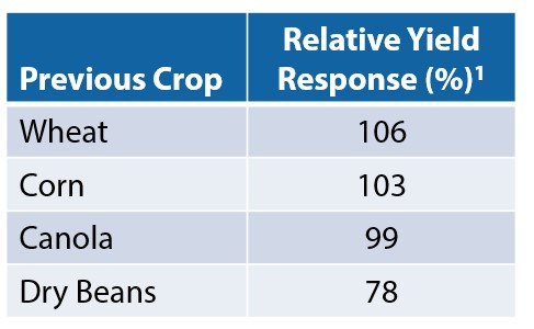 According to MASC (2010-2015) data, dry bean yield response following wheat and corn is positive (106% and 103%, respectively), and following canola is no different (99%).