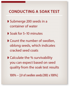 Place 200 seeds in water and calculate the percentage of seeds that swell or lose their seed coats after 10 minutes. Factor this percentage into seeding rate