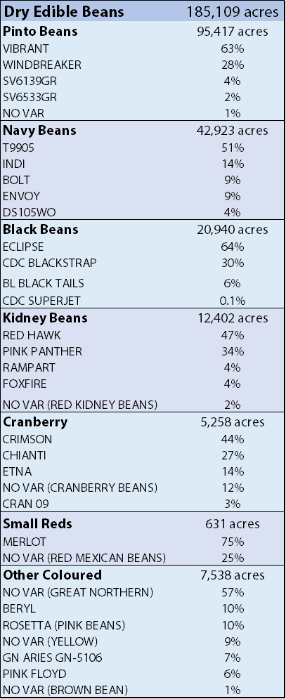 Pinto, navy and black beans are the most commonly grown market classes of dry edible beans in Manitoba.