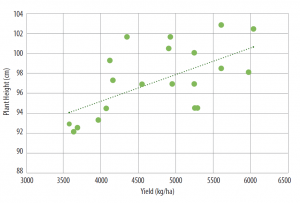- Pea breeders at AAFC-Lacombe have shown that higher yields are positively associated with later maturity and taller plant height.