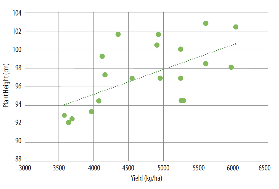 - Pea breeders at AAFC-Lacombe have shown that higher yields are positively associated with later maturity and taller plant height.
