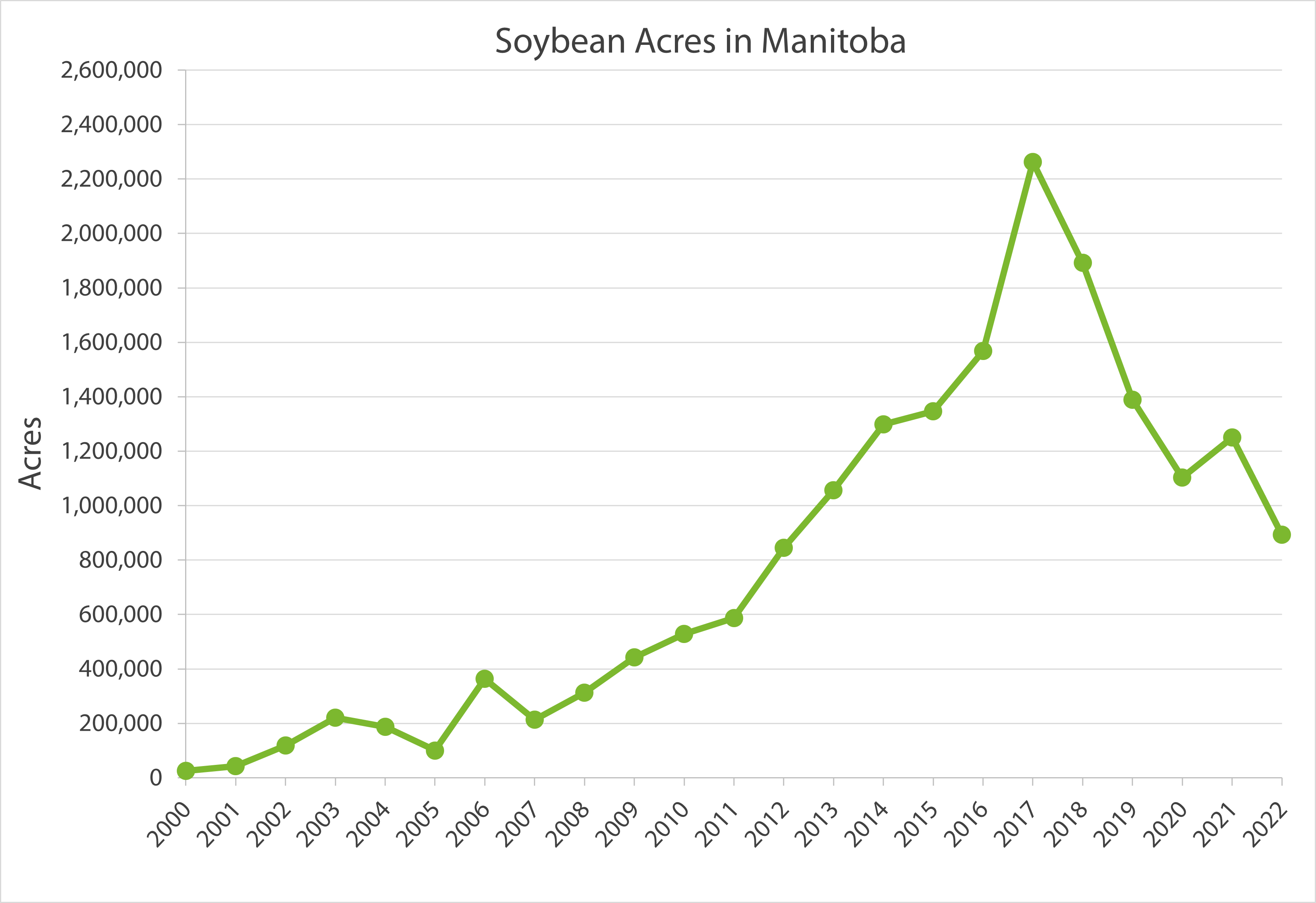 Soybeans were first introduced in Manitoba in the early 1900s. Early production was used both for human consumption and as feed for livestock.