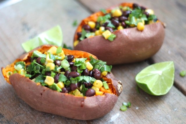Sweet Potatoes Stuffed with Chipotle Black Bean and Corn Salad