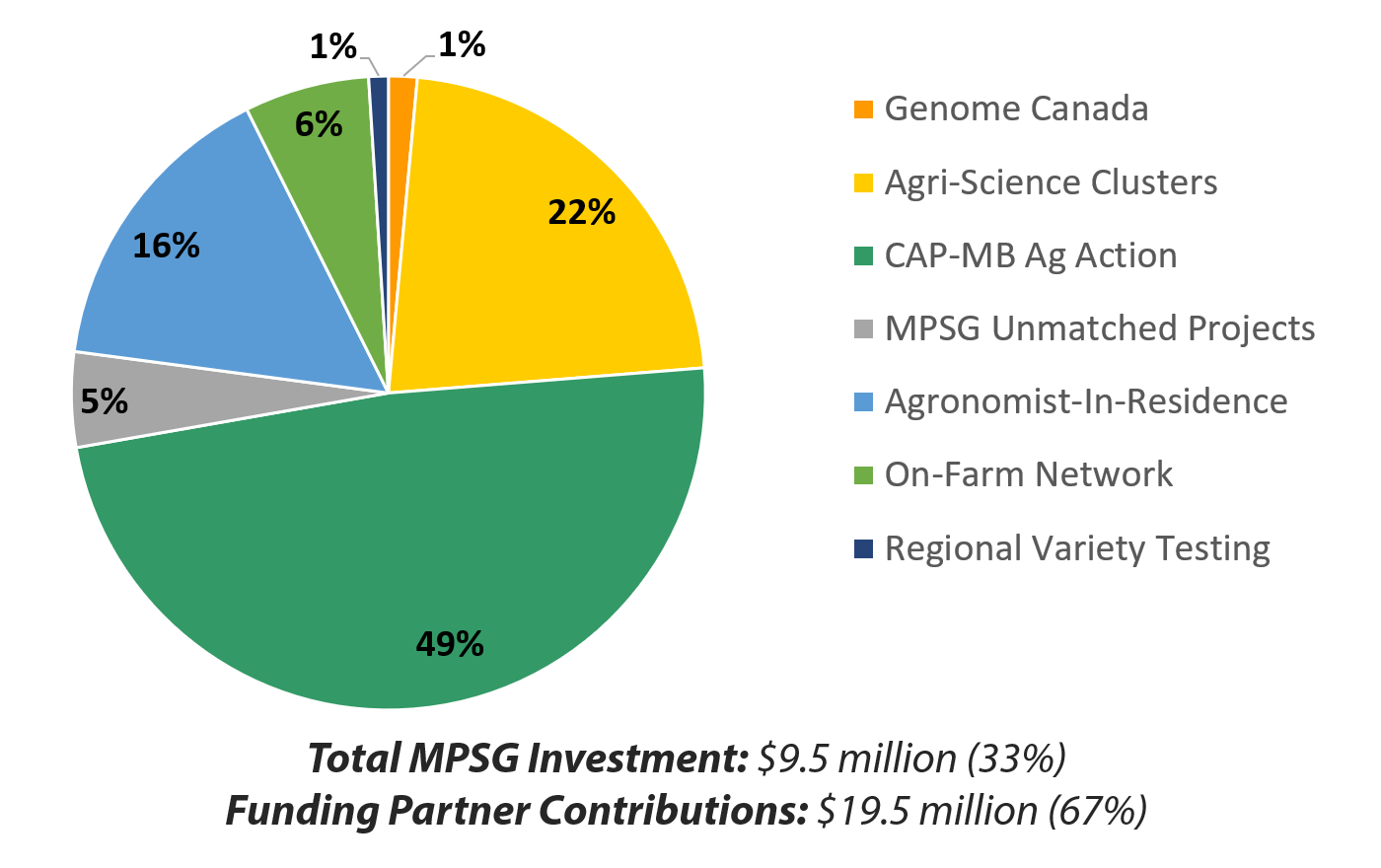 MPSG is committed to maximizing the investment in research and production made by pulse and soybean farmers through their check-off. Staff actively seek leveraging opportunities through collaboration with other commodity groups in Manitoba (e.g., Manitoba Crop Alliance and Manitoba Canola Growers Association), commodity groups across Canada (e.g., Saskatchewan Pulse Growers, Alberta Pulse Growers, Ontario Bean Growers, Grain Farmers of Ontario), federal organizations (e.g., Soy Canada, Pulse Canada and Grain Growers of Canada), the Western Grains Research Foundation and through participation in provincial and federal government funding programs.