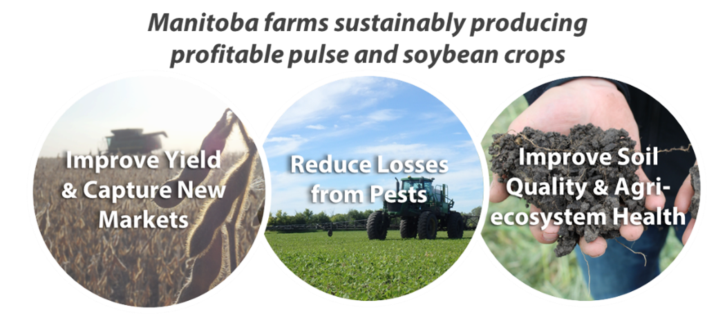 To achieve our vision and mission for pulse and soybean crops in Manitoba, MPSG’s strategy is to target research within three main priority areas: 1) improving yield and capturing new markets, 2) reducing losses from pests and 3) improving soil quality and agri-ecosystem health.