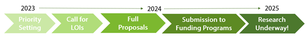 The process (example below) begins with priority setting, based on farmer membership and industry needs, then that priority list becomes a call for LOIs to see which researchers are interested and willing to tackle a project that aligns with these priorities.