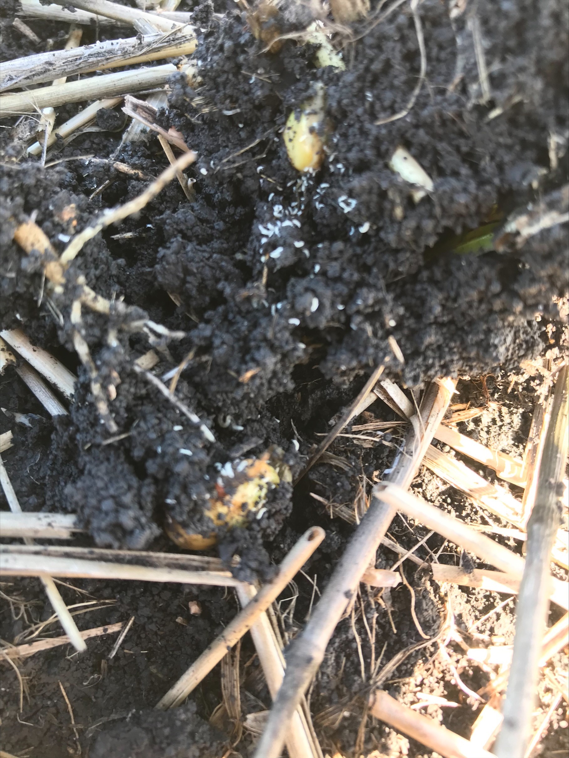 Springtails eating on soybean seed.
