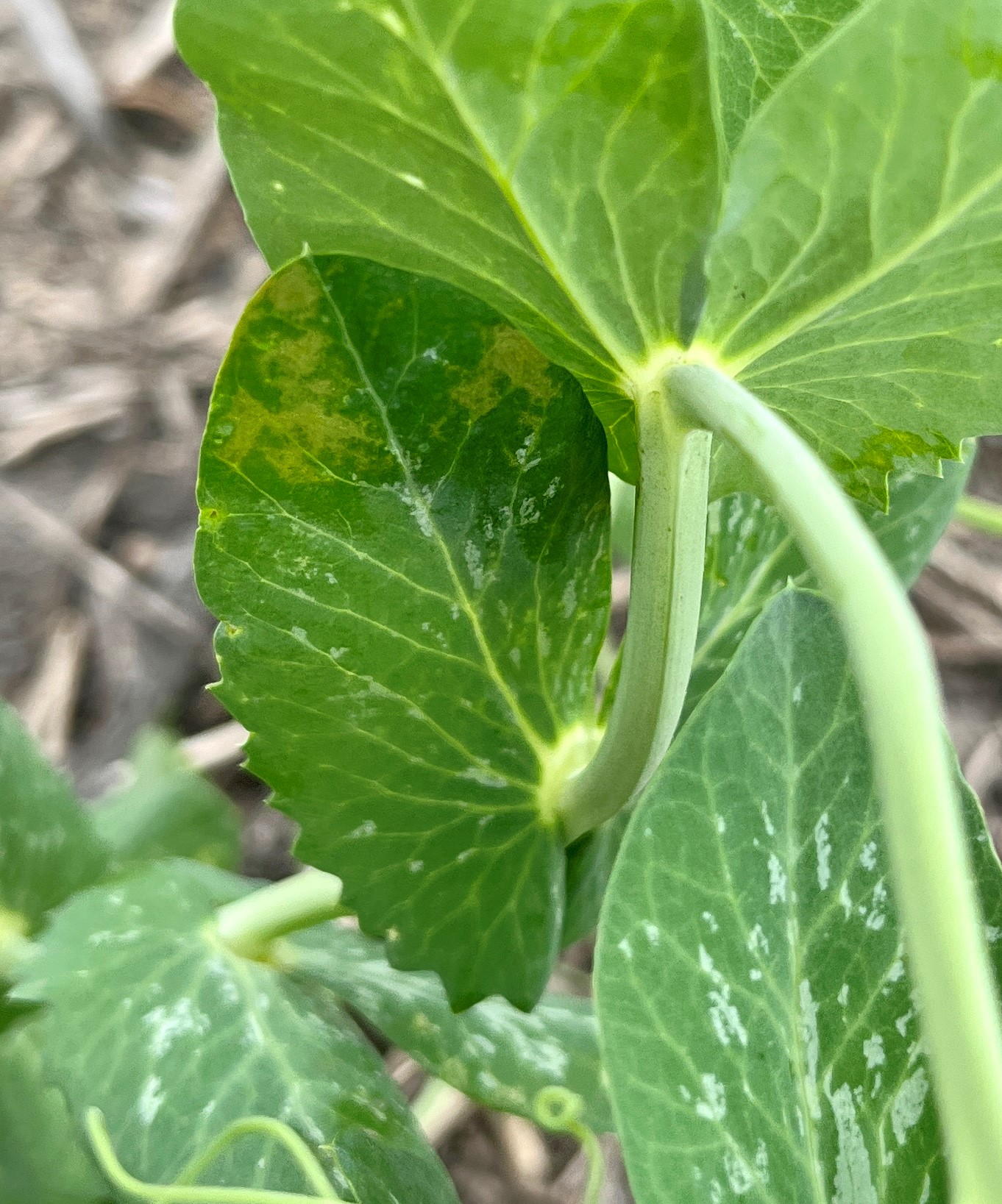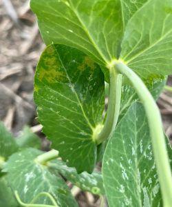 Suspected environmental damage field peas at V8 stage, Roseile. June 20.